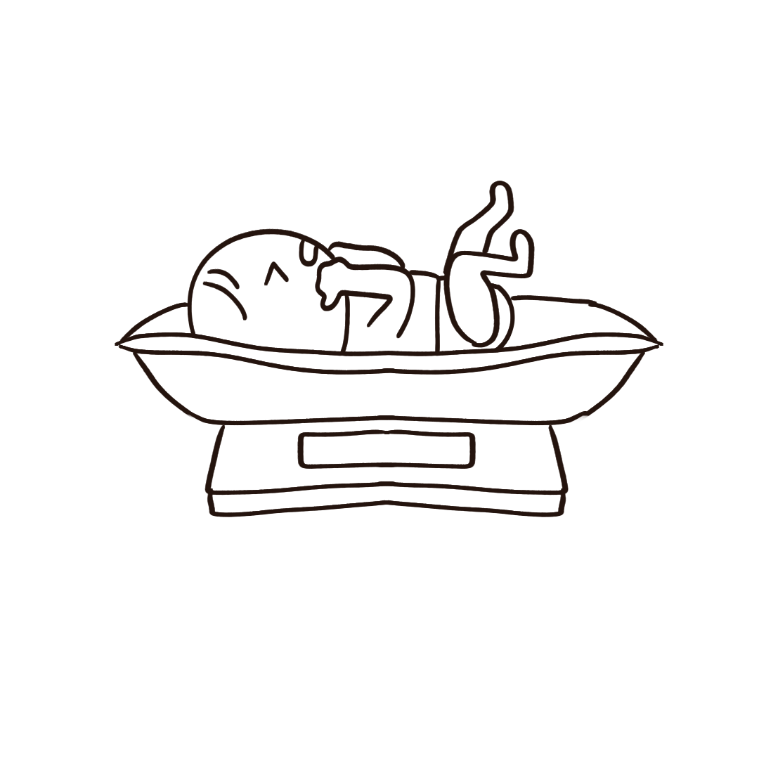 赤ちゃんの体重測定のフリーイラスト素材|カラーと白黒のプレビュー