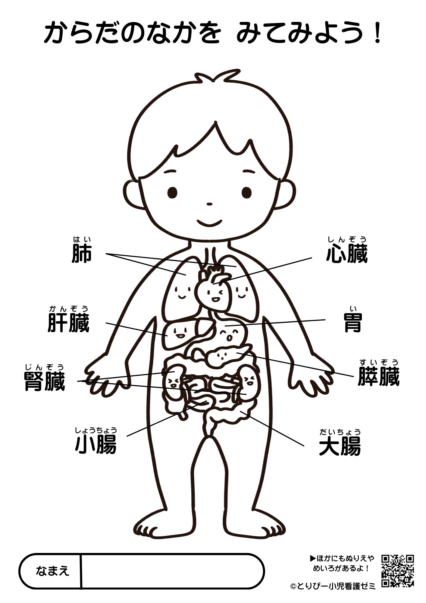 そんなお悩みに応えるために「医学的に正しい配置」だけど「めちゃくちゃ可愛い」オリジナルの人体図ぬりえを作りました!