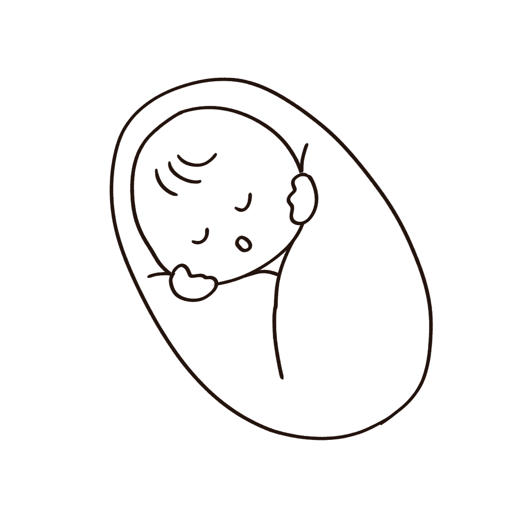 とりぴーおくるみに包まれて眠る赤ちゃんのイラストだよ。
